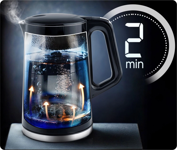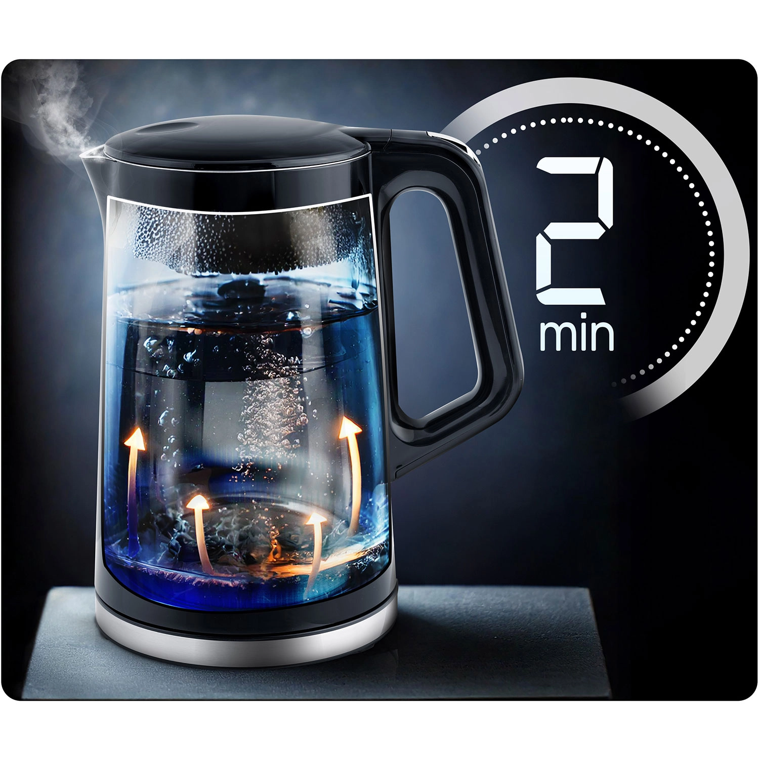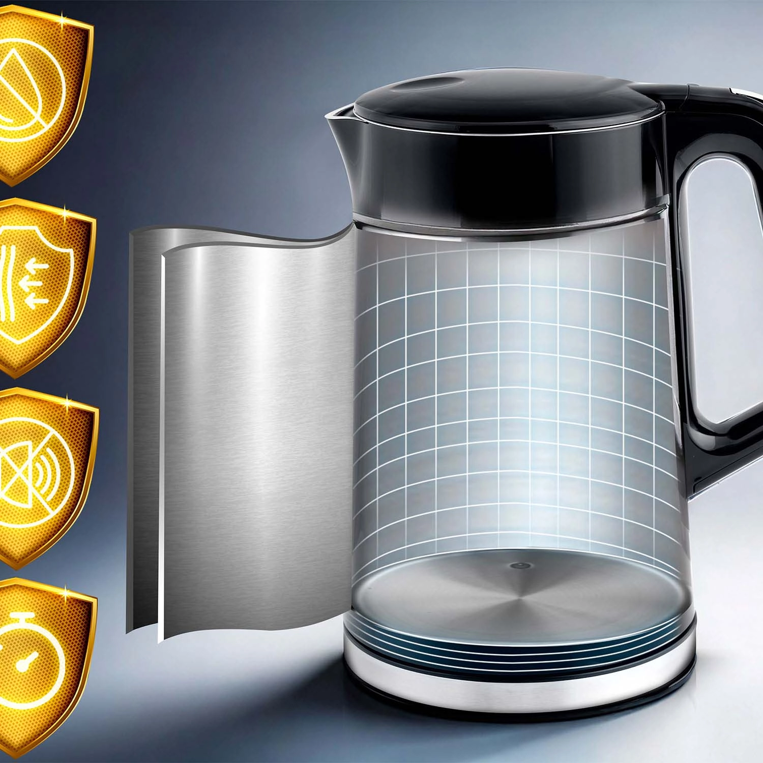 Veiligheid en hygiëne staan voorop: de dubbellaagse CoolTouch-isolatie houdt de behuizing koel, het roestvrijstalen binnenwerk SUS 304 (BPA-vrij) beschermt de smaak en kwaliteit van het water, en het naadloze ontwerp is eenvoudig schoon te maken. Standaard zijn automatisch uitschakelen en droogkookbeveiliging, een 360° draaivoet en comfortabel openen van het deksel met een knop.