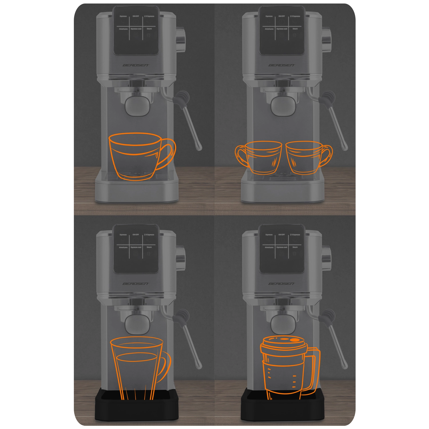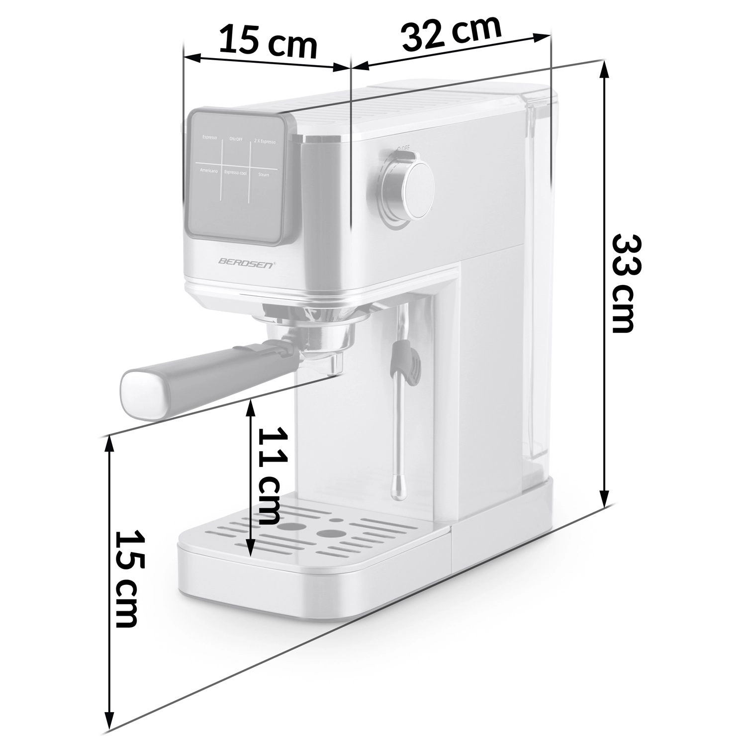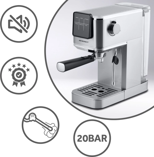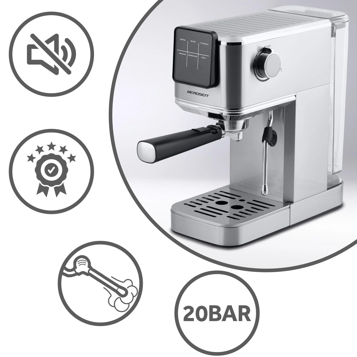 Verander je keuken in een thuiscafé. De BERDSEN hendel-espressomachine met 20 bar en een nauwkeurig extractiesysteem haalt het maximale aan smaak en aroma uit versgemalen koffie. Met touchbediening kies je snel espresso, cappuccino, latte of americano – en dankzij de cold espresso-functie maak je in een handomdraai verfrissende iced latte of espresso tonic.