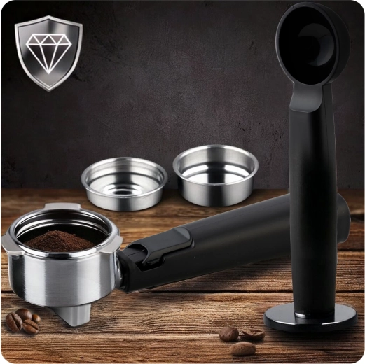 - 2-in-1 maatschep met tamper, portafilter met dubbele uitloop