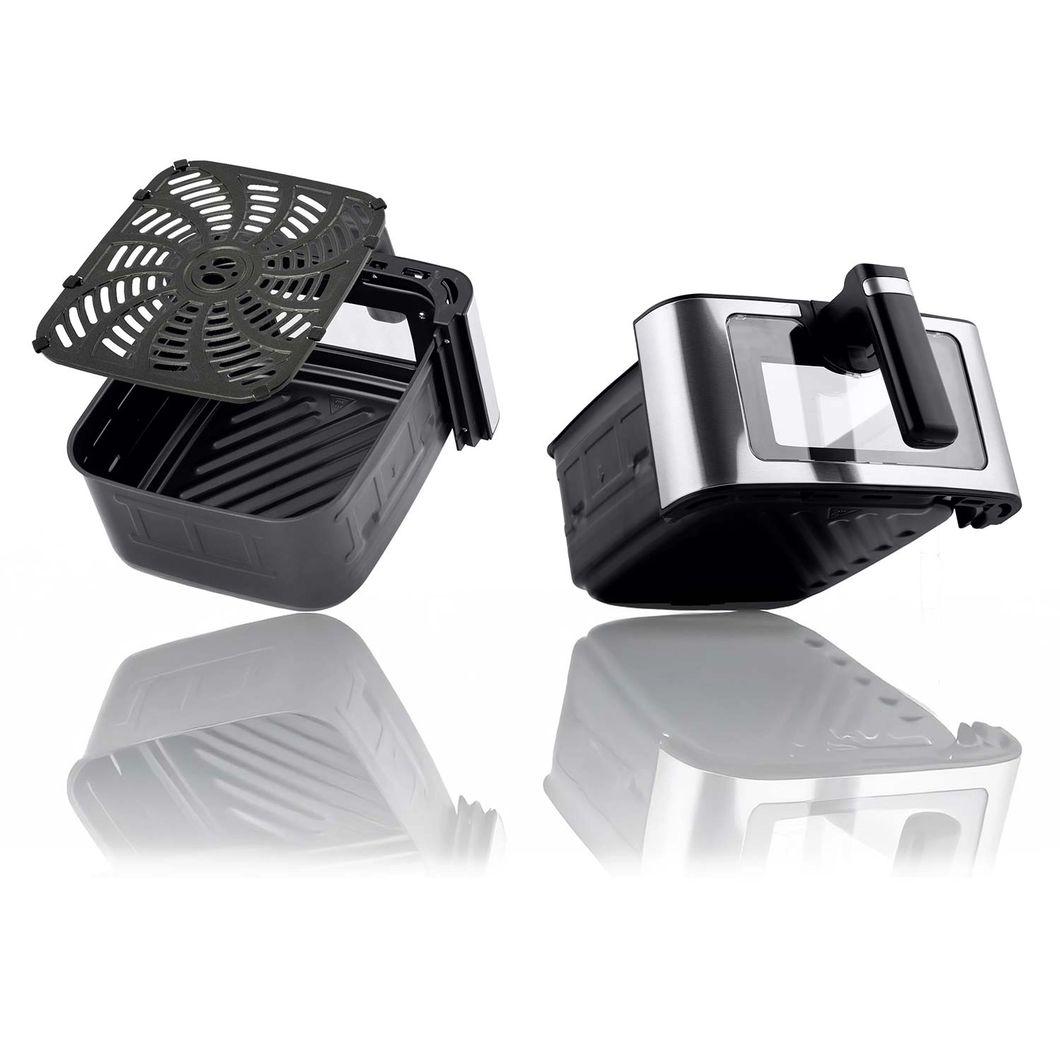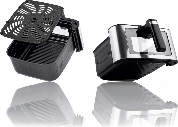 De bediening is uiterst eenvoudig dankzij het touchpanel met 8 automatische programma’s (friet, vis, kip, garnalen, steak, cake, pizza, vleugels). Het kijkvenster in de mand en de LED-verlichting maken controle mogelijk zonder de lade te openen. Stel tijd 1–60 min en temperatuur tot 200 °C in, gebruik de herinnering om het gerecht om te schudden en geniet van consequent geweldige resultaten.