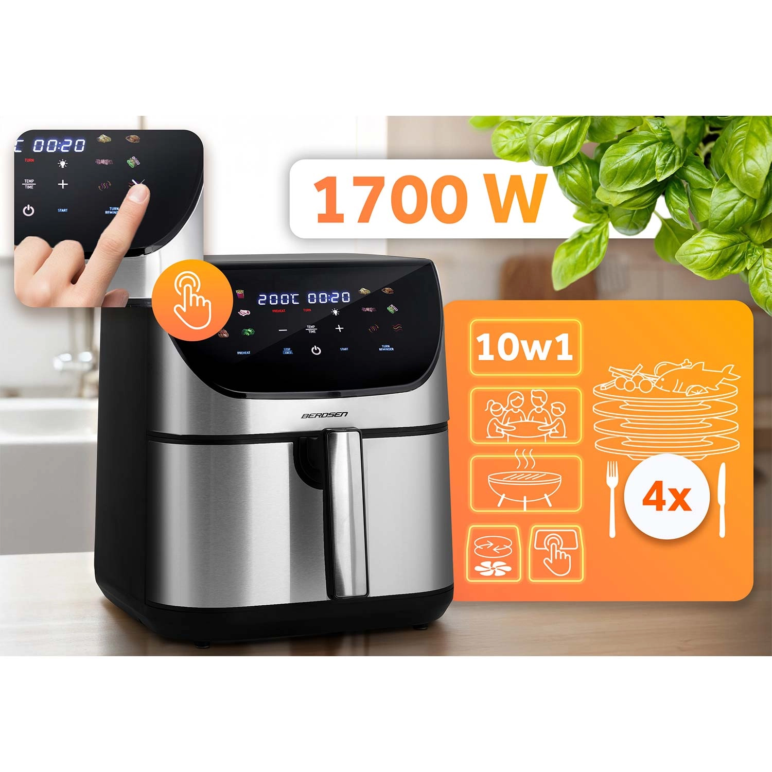 Hete lucht friteuse 8 l BERDSEN 1700 W roestvrij staal