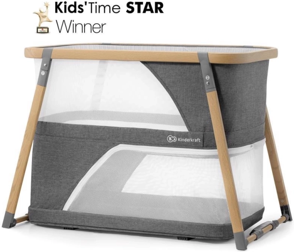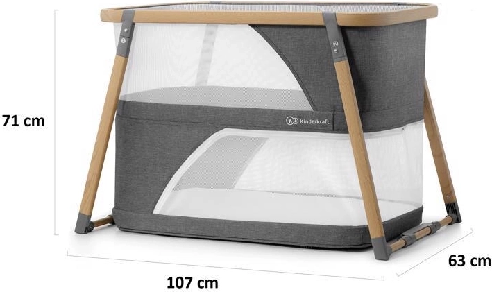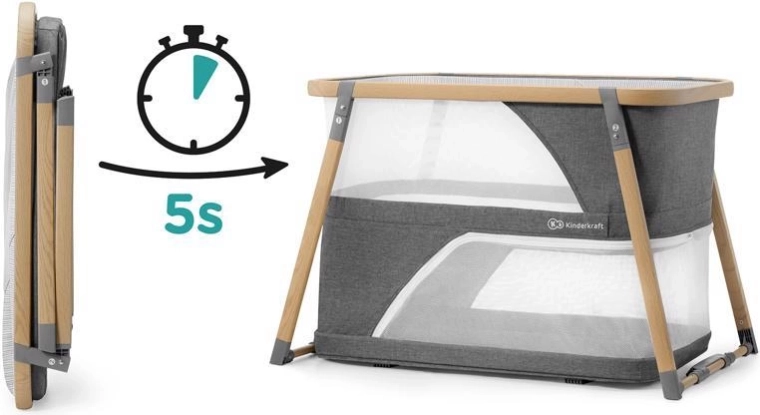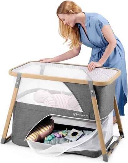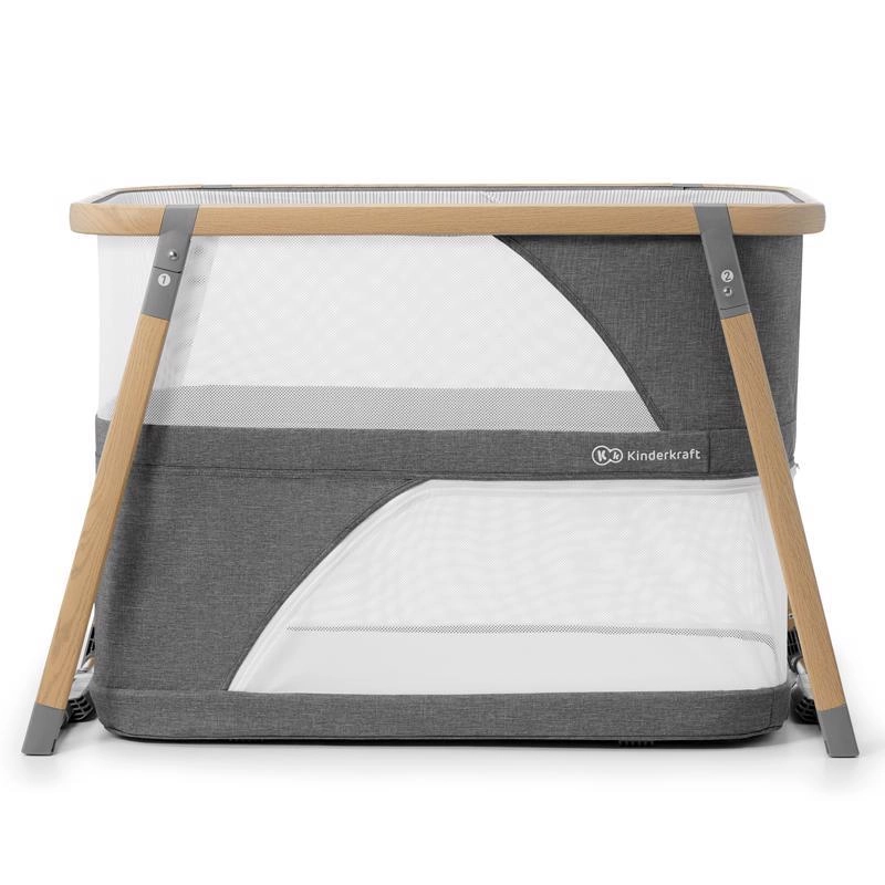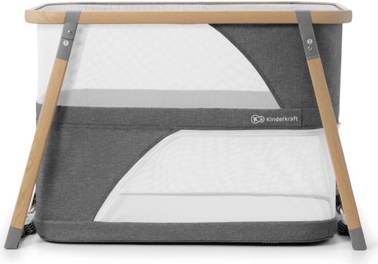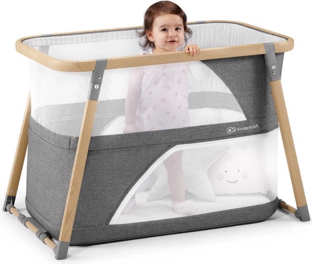 Het multifunctionele 4-in-1 KIDERKRAFT Sofi ledikant in elegant grijs combineert een ledikant, reisbedje, box en schommel. Biedt supersnel inklappen in 5 seconden, een licht aluminium frame met houtdecor, ademende mesh-zijkanten en een kwalitatieve schuimmatras voor veilig en comfortabel slapen en spelen, thuis en onderweg.