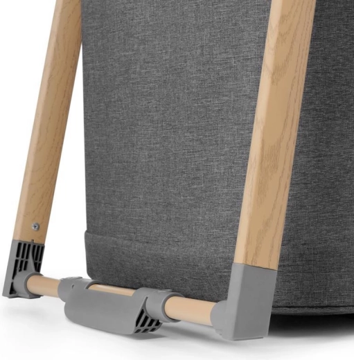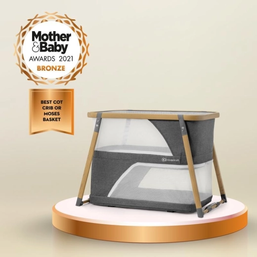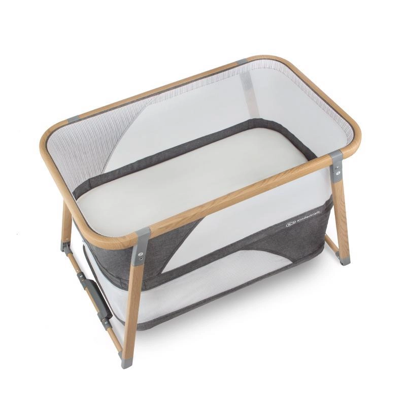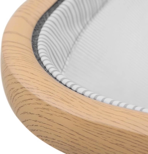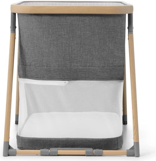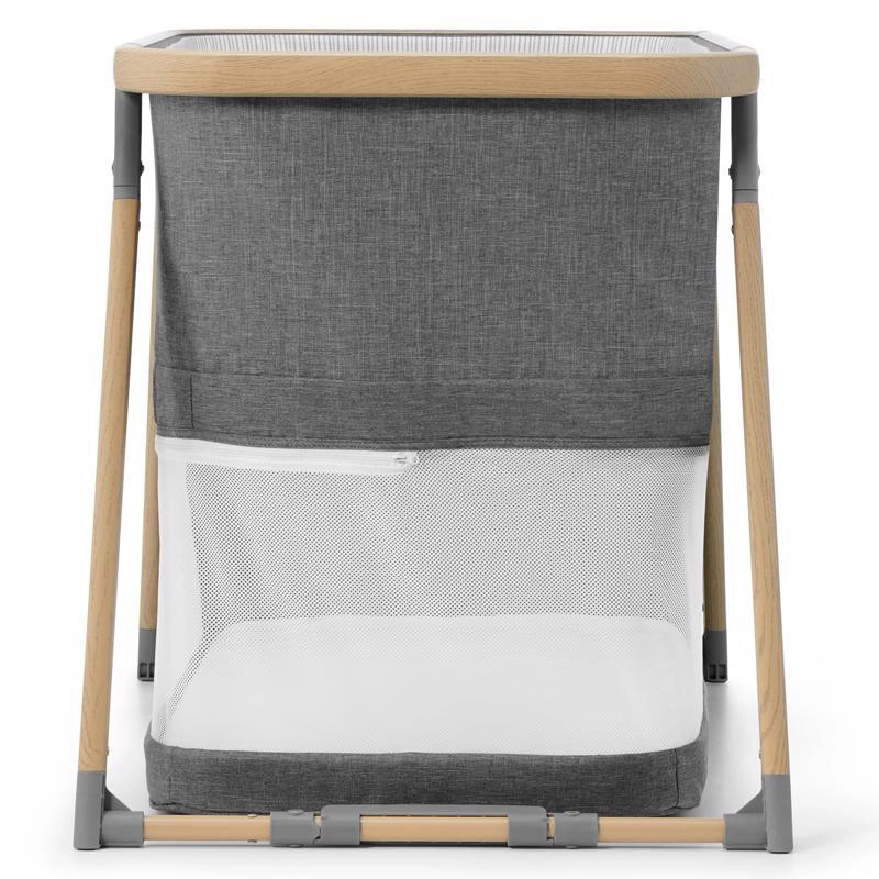 Mesh-panelen ondersteunen de luchtcirculatie en zorgen voor visueel contact met je kindje, terwijl het aluminium frame met houtdecor stabiliteit garandeert.