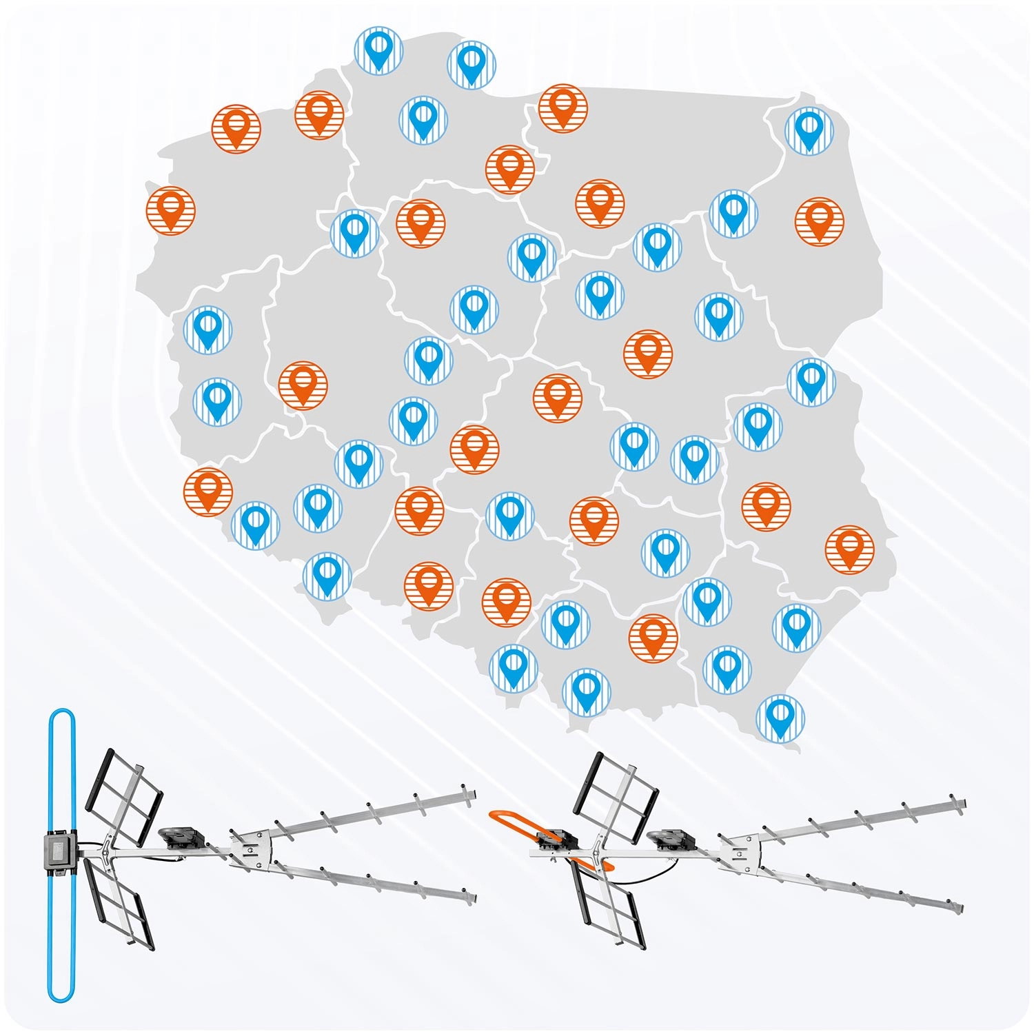 Ondersteuning voor de VHF + UHF-banden garandeert volledige dekking van alle multiplexen (MUX 1–8). De draaibare VHF-dipool maakt het eenvoudig om horizontale of verticale polarisatie in te stellen – pas hem simpelweg aan volgens de zender. Met een bereik tot 80 km is hij ideaal voor zowel stad als platteland, ook voor ontvangst van verder gelegen zenders.