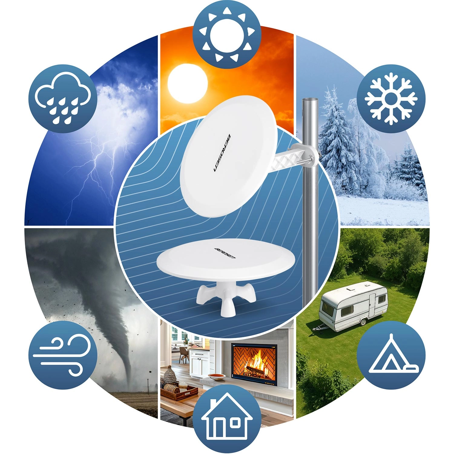 - Ideaal voor onderweg: in auto, caravan, boot of vrachtwagen – betrouwbare ontvangst overal.