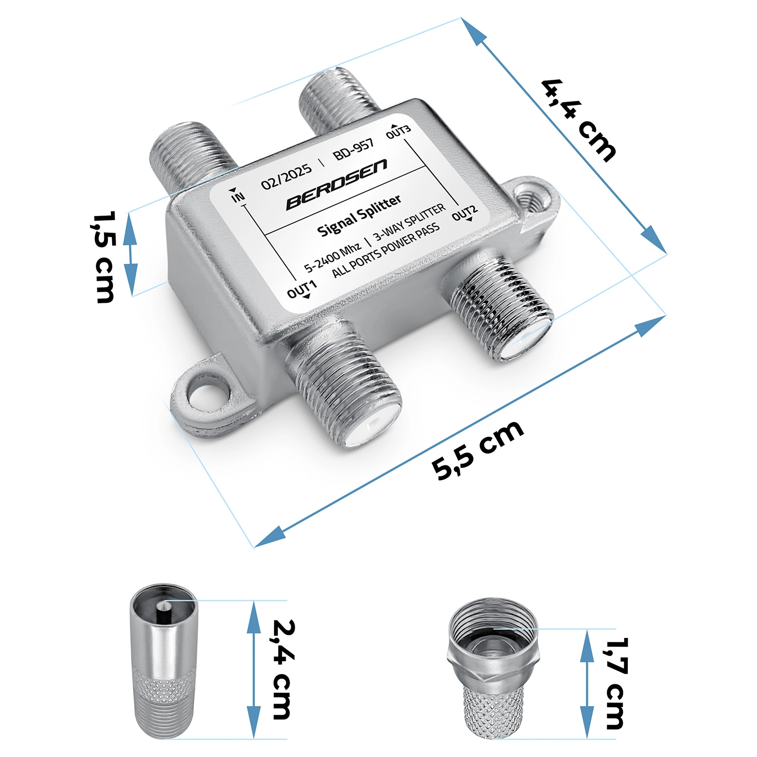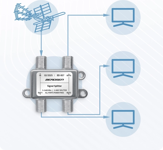 Breedband antennesplitter 3-weg 5–2400 MHz Berdsen