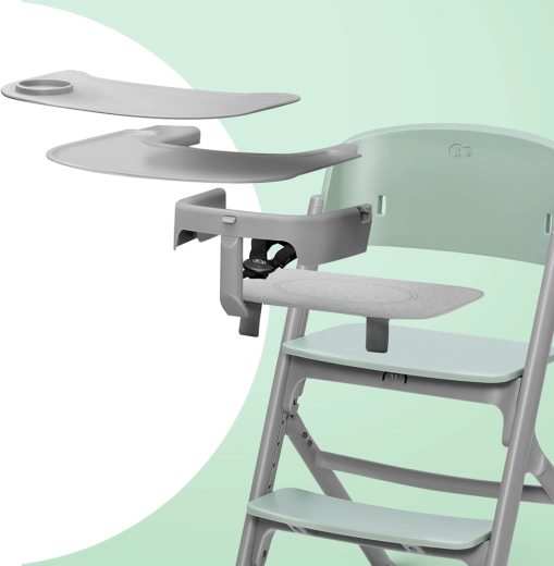 De veiligheid wordt gewaarborgd door een 5-puntsgordel met verstelbare lengte en een sterke, stabiele constructie van staal en aluminium met een brede pootafstand. De grote, praktische tafel met antislip siliconen blad (BPA-vrij) kan in de vaatwasser. Je kunt de stoel combineren met de CALMEE-wip en zo een hoge wipstoel creëren, zodat je je baby altijd op ooghoogte hebt.