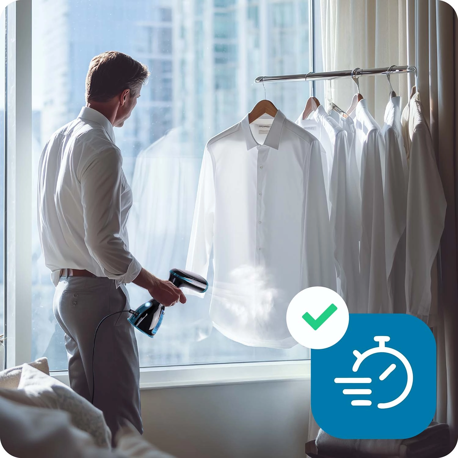 Geen gedoe meer met een strijkplank en lang wachten. De BERDSEN handstomer maakt een overhemd al in 1 minuut glad, direct op de hanger. Dankzij de stoomafgifte van 32 g/min pakt hij ook hardnekkigere kreukels aan, terwijl de 280 ml watertank zorgt voor langer ononderbroken gebruik. De praktische verlichte knop maakt de bediening eenvoudig en de functie voor droog strijken breidt de inzet uit afhankelijk van het materiaal.