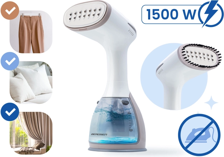 Hete stoom eliminee rt bacteriën en huisstofmijt op kleding, beddengoed en bekleding. Desinfecteert zonder chemische middelen en verlaagt het vochtgehalte in stoffen, waardoor de groei van microben wordt beperkt. Geschikt voor jassen, gordijnen, kussens en banken.