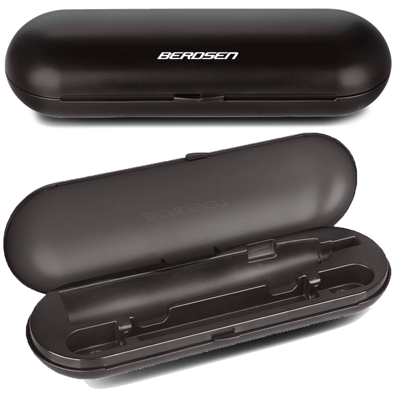 De duurzame harde case biedt veilig plaats aan de tandenborstel en twee opzetborstels. Houdt alles schoon en geordend, thuis en op reis.