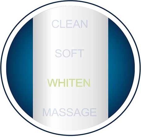 Reinigen, Witten, Zacht en Massage: kies de ideale instelling voor dagelijkse hygiëne, gevoelige tanden, het polijsten van glazuur en stimulatie van het tandvlees.