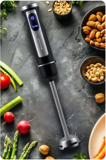 Ontdek de veelzijdige keukenhulp: de Berdsen staafmixer met een extreem krachtige 1500 W motor en Turbo-functie verwerkt alles van zacht fruit tot harde noten. Het titanium mes GOLD garandeert een lange levensduur, precieze snit en eenvoudig onderhoud. Met 25 snelheden stel je moeiteloos het ideale vermogen in voor soepen, sauzen, smoothies en puree.