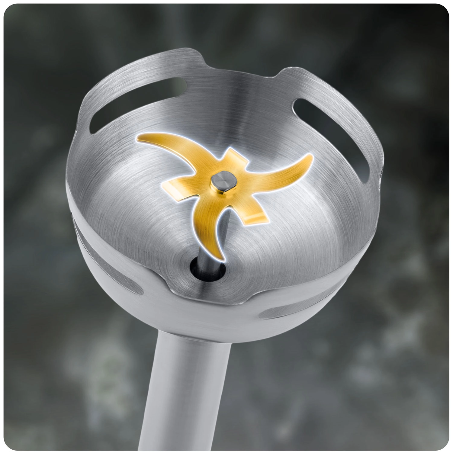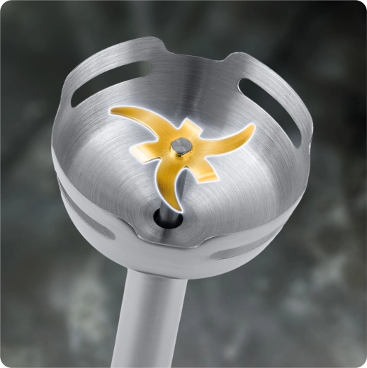 Het zeer duurzame titanium mes kan zelfs harde ingrediënten aan en is tegelijk eenvoudig te reinigen. Bereik sneller gladde resultaten met minder inspanning.