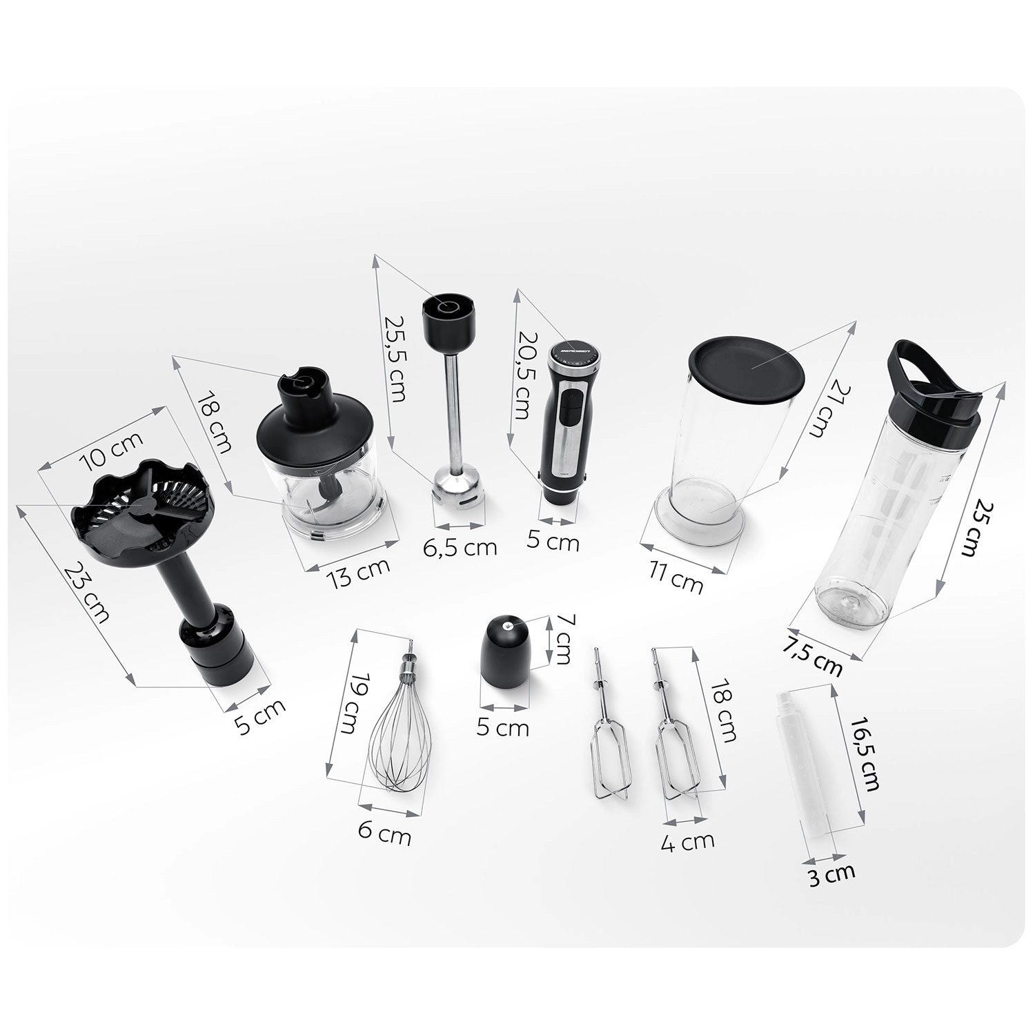 De ergonomische behuizing met antislipgreep, roestvrijstalen afwerking en hoge bouwkwaliteit maken van deze set een betrouwbare tool voor elke dag – van romige soepen en fijne puree tot luchtige slagroom.