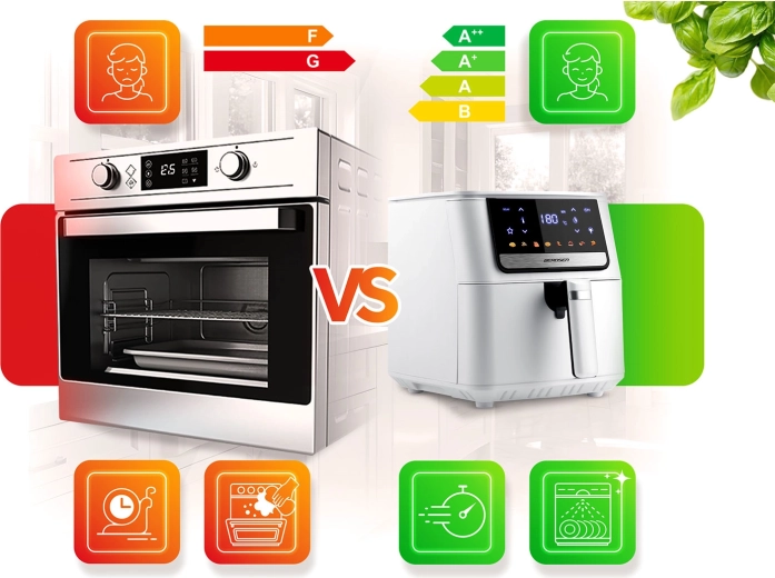 Eén apparaat vervangt een traditionele friteuse, oven, grill, tosti-/broodrooster, voedseldroger en etenwarmer. Inclusief uitgestelde start, herinnering om te schudden/om te draaien, oververhittingsbeveiliging en automatische uitschakeling voor veilig gebruik.