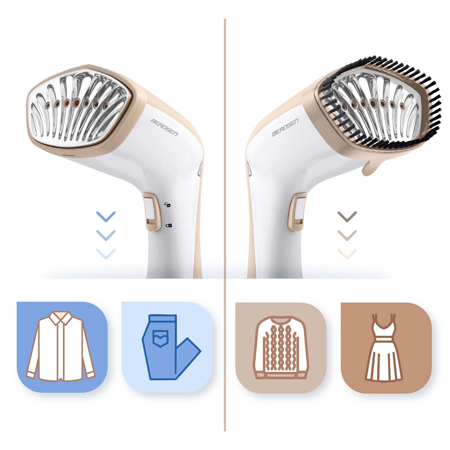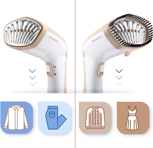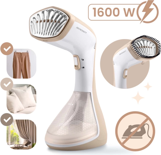 Vergeet het omslachtig opzetten van een strijkplank en wachten tot het strijkijzer is opgewarmd. De handstomer van BERDSEN strijkt kreuken glad rechtstreeks op de hanger, frist colberts, overhemden en jurken op en dankzij de krachtige stoomstoot van 26 g/min pakt hij ook hardnekkigere kreuken aan. De uitneembare tank van 230 ml maakt langer stomen en gemakkelijk bijvullen mogelijk.