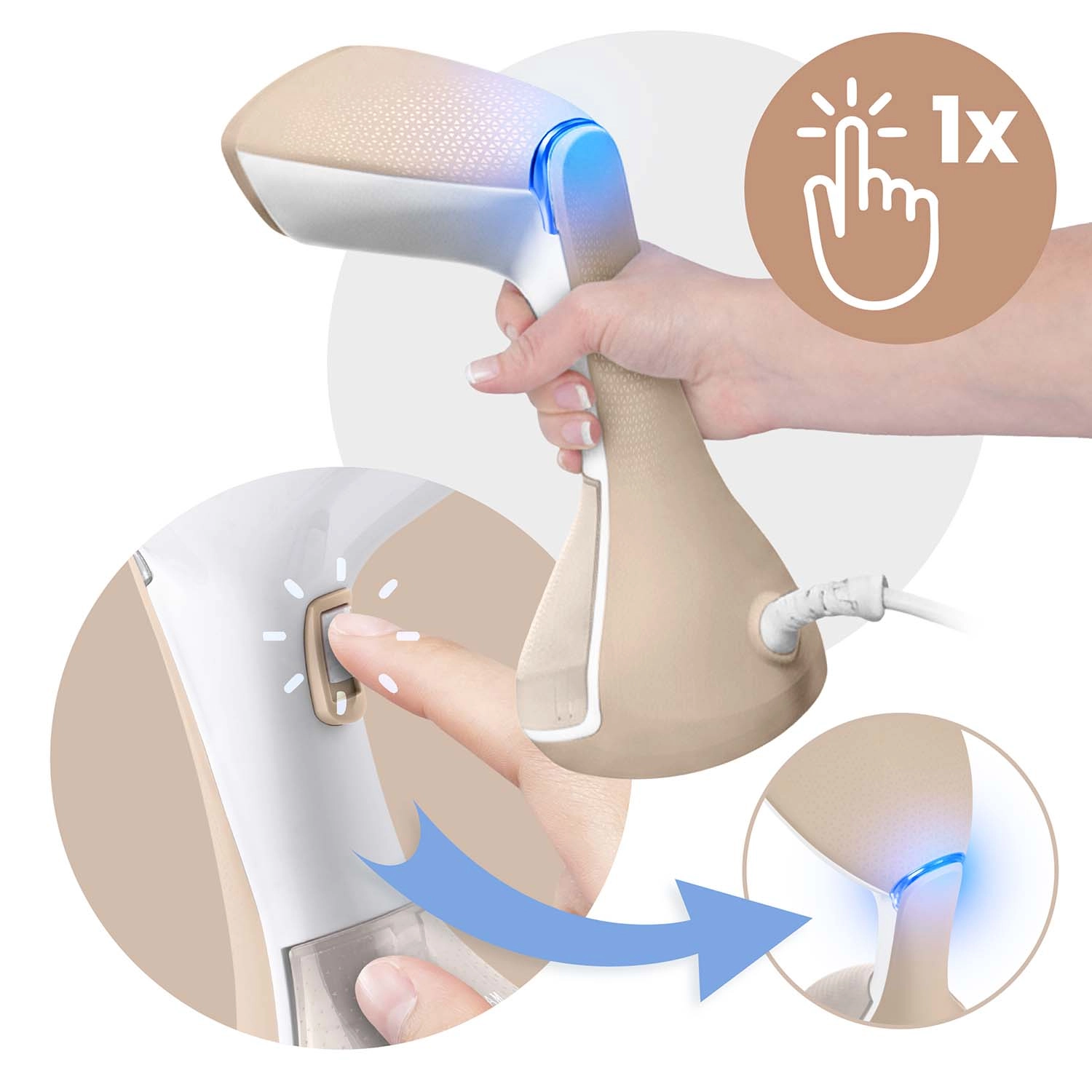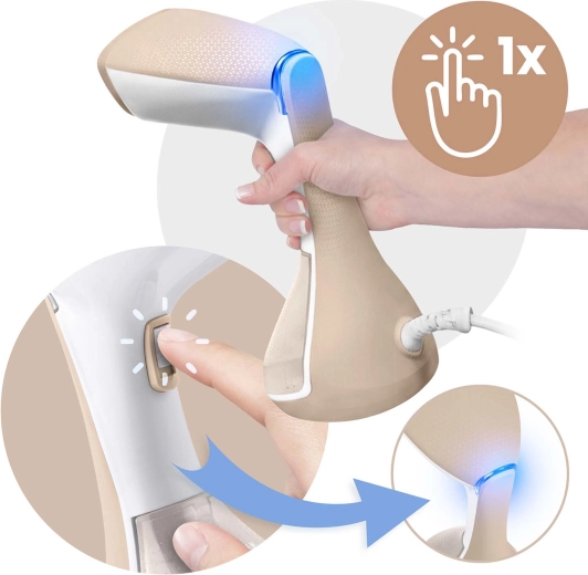 De krachtige stoomstoot strijkt snel zelfs hardnekkige kreuken in overhemden, broeken en jurken glad – rechtstreeks op de hanger, zonder strijkplank.