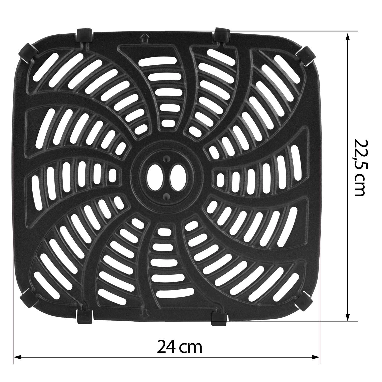 De afmetingen 24 × 22,5 cm passen precies in de genoemde modellen en ondersteunen een gelijkmatige hete-luchtcirculatie.