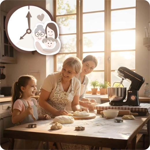 Het hart van de robot is een koperen motor van 1400 W en volledig metalen tandwielen, die zorgen voor een soepele werking, stabiliteit en een lange levensduur, zelfs bij het verwerken van stevig deeg.