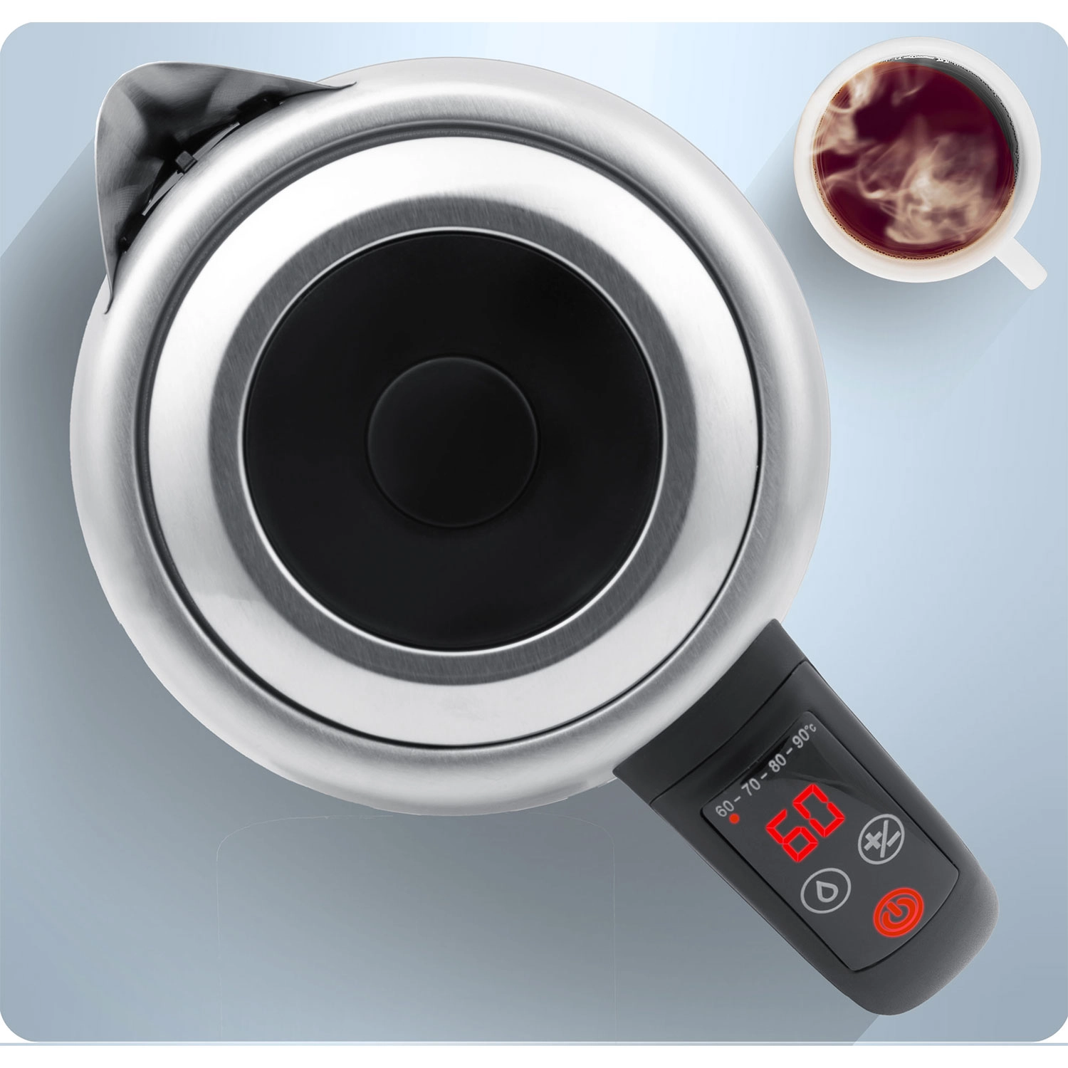 Stel 60/70/80/90/100 °C in of verfijn per 5 °C met de +/- knoppen op het handvat. Ideaal voor groene thee, koffie en drankjes voor kinderen.