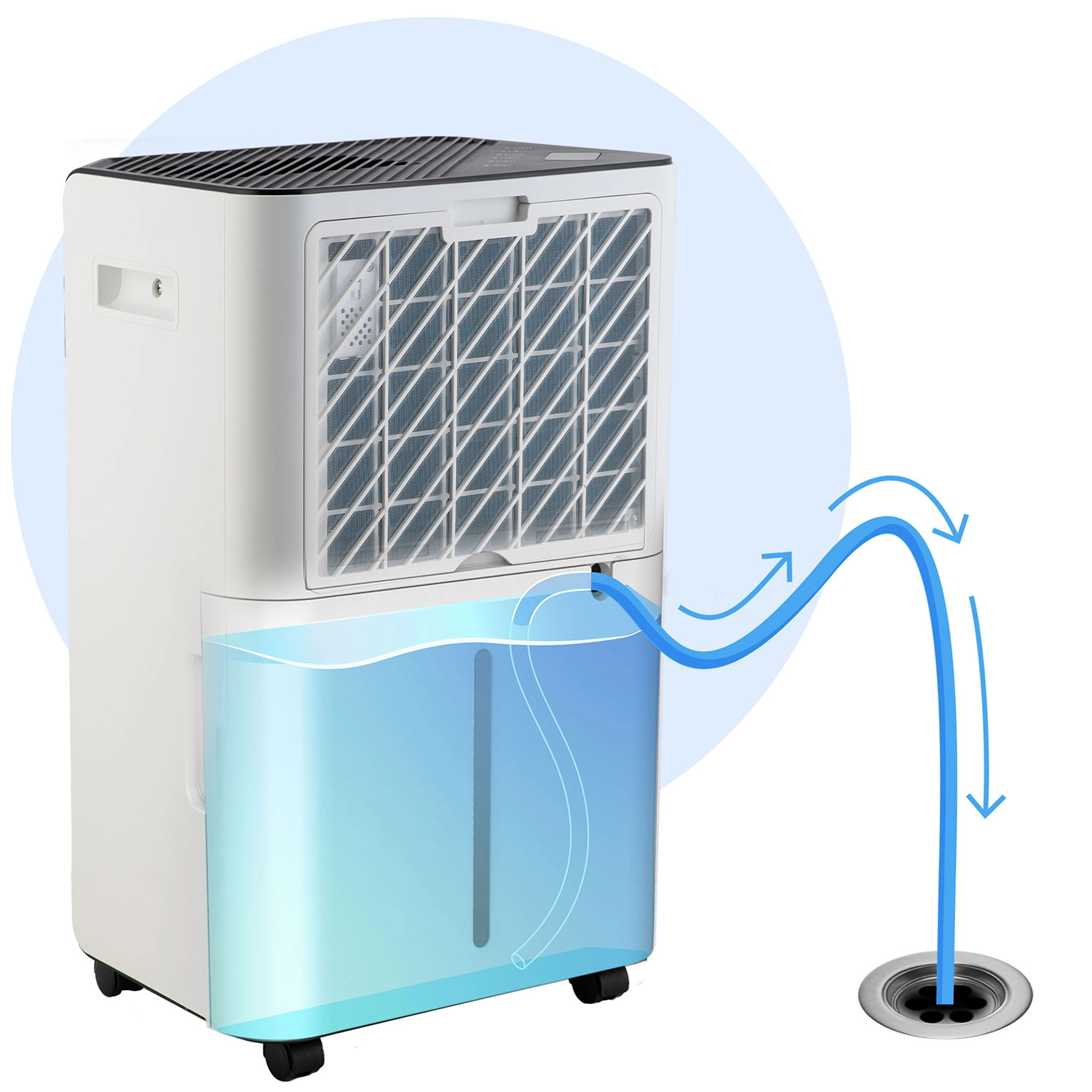 Kies tussen de ruime tank van 4,5 l en continue waterafvoer (slang inbegrepen). Het afwasbare voorfilter vangt stof en allergenen; het milieuvriendelijke koelmiddel R290 is vriendelijk voor het milieu. Het apparaat helpt ook wasgoed sneller te drogen en is dankzij het handvat en de wielen eenvoudig te verplaatsen.