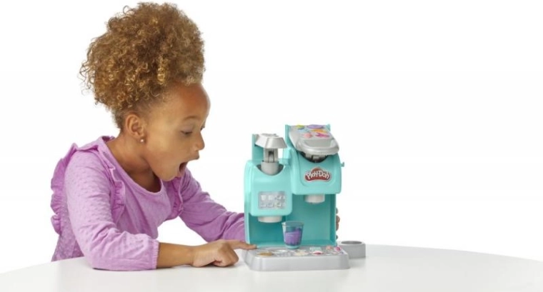 Ontdek een wereld vol fantasie met de creatieve set Play-Doh Kleurrijke Koffiebar. Kinderen maken hun eigen kleurrijke drankjes, ijscoupes en zoete lekkernijen – van koffie en thee tot frappé en milkshakes. Met de hendel vullen ze bekertjes, bij het station voegen ze “slagroom” toe en met behulp van vormpjes toveren ze koekjes, cupcakes en donuts tevoorschijn. De set bevat 8 potjes Play-Doh-klei en 20 accessoires voor eindeloos baristaspel.