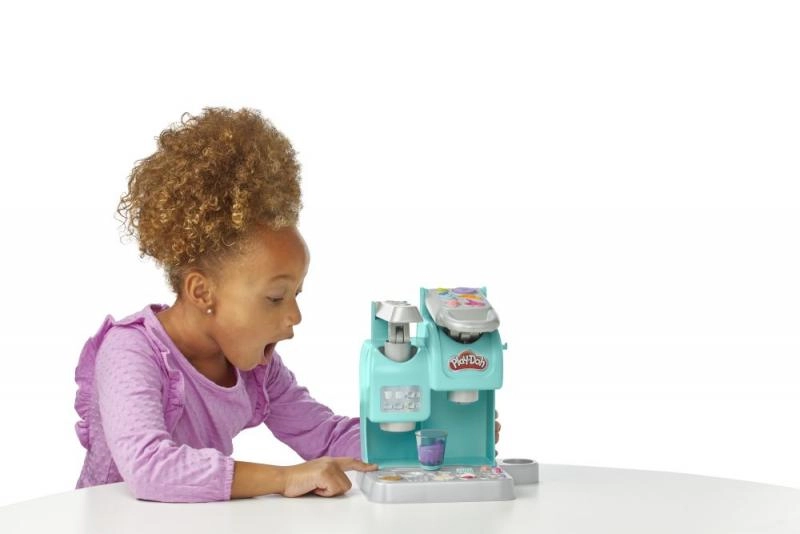Verander de speelhoek in een koffiebar met Play-Doh Kleurrijke Koffiebar! Het turquoise apparaat met hendel perst een “drankje” in het bekertje, bij het uitgiftepunt versier je het met luchtige “slagroom” en met de vormpjes maak je heerlijk ogende zoetigheden. Zet alles daarna in de transparante standaard zoals in een echte vitrine.
