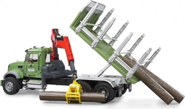 Het robuuste model van de BRUDER MACK GRANITE vrachtwagen is ideaal voor realistisch spel rond houtkap en -transport. De transparante voorruit van onbreekbaar polycarbonaat, de openende cabine en de motorkap met zicht op de motor geven het model een authentieke uitstraling. Voor stabiliteit tijdens het laden zorgen de uitschuifbare steunpoten, terwijl de draaibare kraan met grijper eenvoudig te bedienen is.