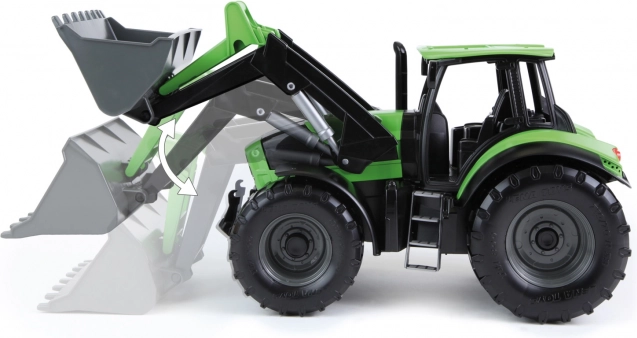 Robuuste kindertractor met voorlader in DEUTZ FAHR Agrotron-design, indrukwekkend door het realistische uiterlijk op schaal 1:15. Voorzien van een functionele voorlader, gemaakt van hoogwaardig kunststof en geschikt om zowel binnen als buiten mee te spelen. Lengte 45 cm.