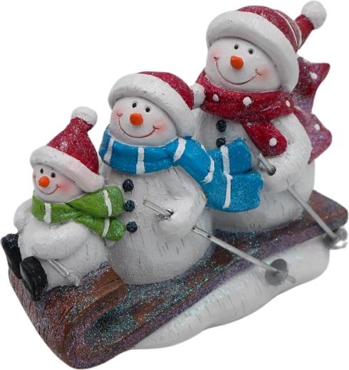 De betoverende decoratie met een gezinnetje sneeuwpoppen op een slee brengt huiselijke warmte en de magie van winterse romantiek in je interieur. Met verfijnde details, kleurrijke sjaals en een lieve uitstraling wordt het de blikvanger op een plank, dressoir of vensterbank. Dankzij kwalitatieve, prettig aanvoelende materialen blijft het vele seizoenen mooi.