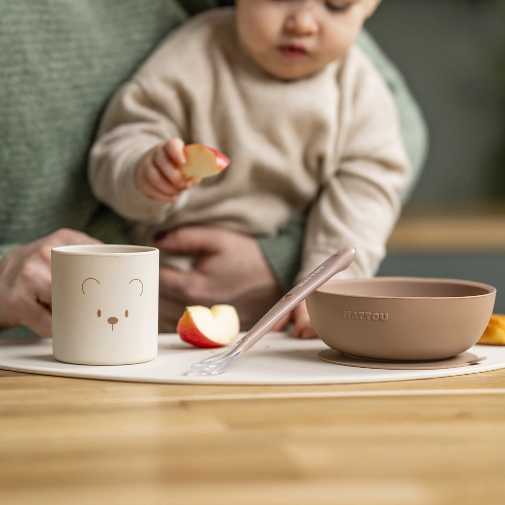 Deze siliconen eetset van Nattou is ontworpen om de eerste stapjes van je kind naar zelfstandig eten te ondersteunen. Het zachte en duurzame siliconen voelt prettig aan, is veilig voor kinderlijk tandvlees en gaat tegelijk lang mee zonder te barsten of te breken. De neutrale natural-tint past moeiteloos bij een modern interieur.