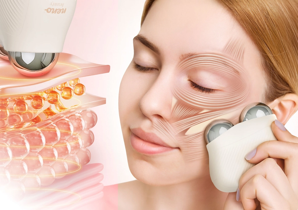 Zachte EMS‑impulsen stimuleren spiervezels tot korte, gecontroleerde contracties. Regelmatig gebruik ondersteunt de spiertonus en elasticiteit van de huid en helpt de gelaatscontouren optisch te accentueren.