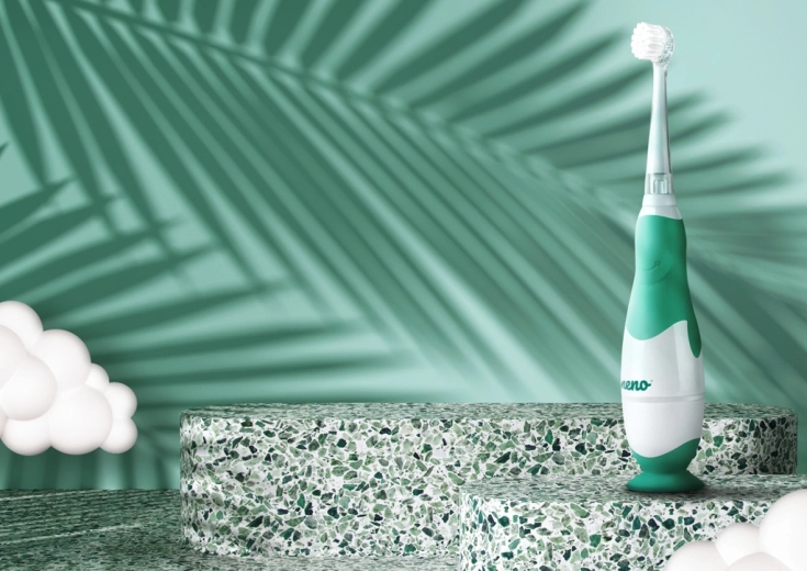 Zorg vanaf de eerste maanden voor een gezonde glimlach met de elektrische kindertandenborstel Neno Denti. Hij biedt zachte trillingen van 17.000/min, zachte nylon borstelharen, een praktische LED-lamp en waterdichtheid IPX7. Dankzij de ingebouwde timer van 2 minuten en de zuignap voor verticale plaatsing leren kinderen gemakkelijk de juiste gewoonten voor het poetsen van tanden en tandvlees – thuis en onderweg met voeding via 1× AAA.