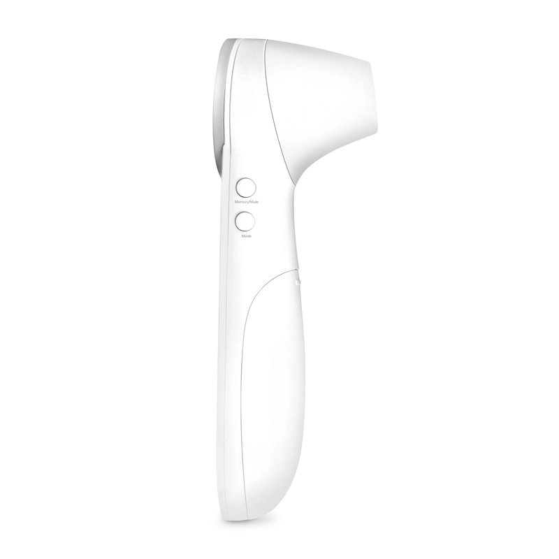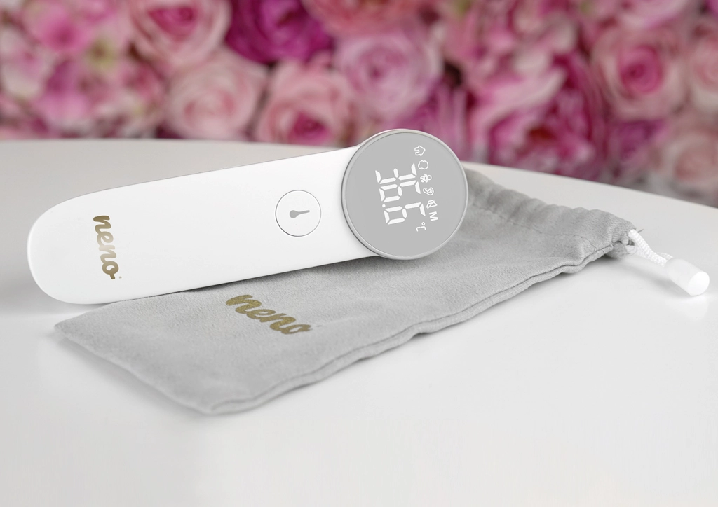 Dankzij de infraroodtechnologie levert hij betrouwbare resultaten in het bereik van 22–43 °C. De stille modus is ideaal wanneer je de temperatuur van een slapend kind controleert. Het overzichtelijke LED-display is zowel overdag als ’s nachts gemakkelijk af te lezen en het geheugen voor 20 metingen maakt het volgen van de temperatuurontwikkeling eenvoudig. De voeding wordt verzorgd door 2× AAA-batterijen (meegeleverd) en na 10 s zonder activiteit schakelt het apparaat zichzelf uit.