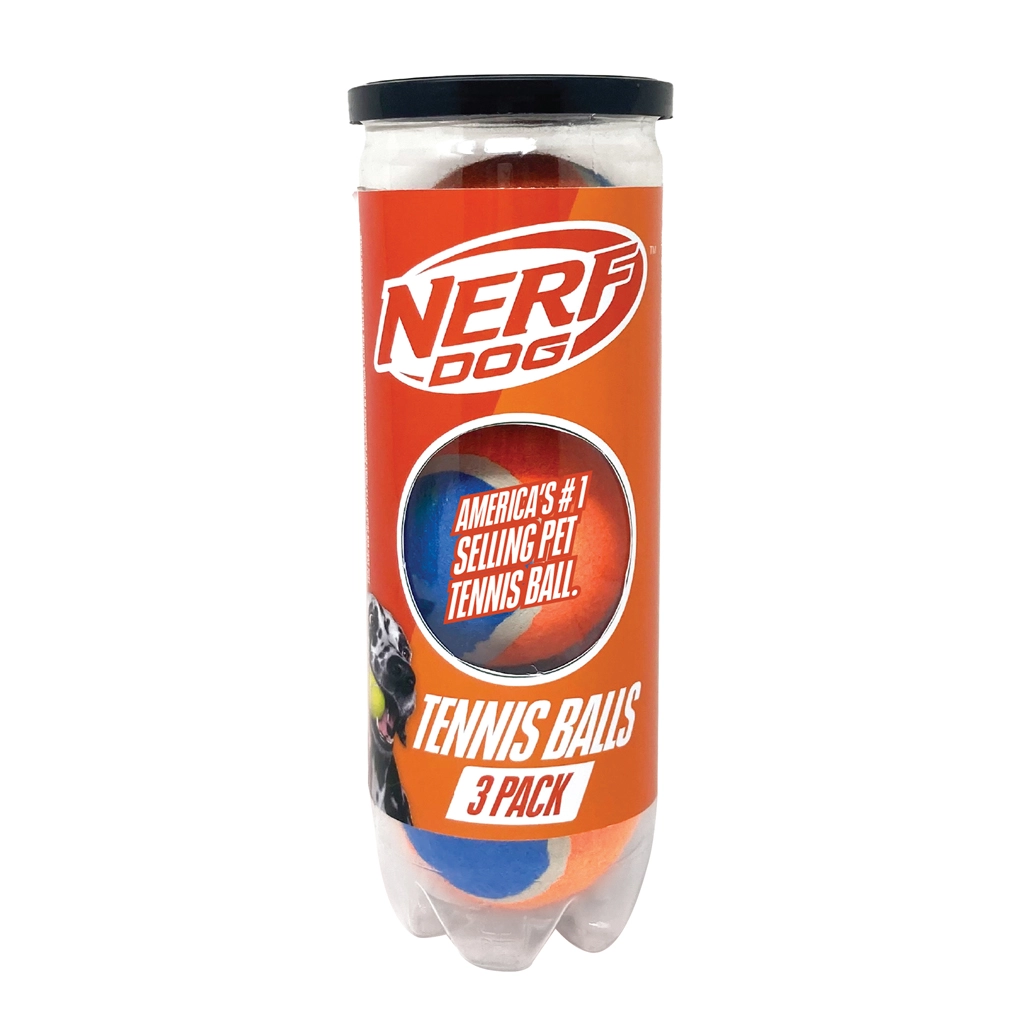 Geniet van langer en stiller apporteren met een set van drie NERF DOG tennisballen in een praktische drukbestendige koker. De ballen met non‑squeak functie (zonder pieper) zijn gemaakt van duurzaam rubber met een tenniscoating, stuiteren uitstekend en zijn dankzij de contrasterende kleuren (blauw/oranje) goed zichtbaar, ook in beweging.