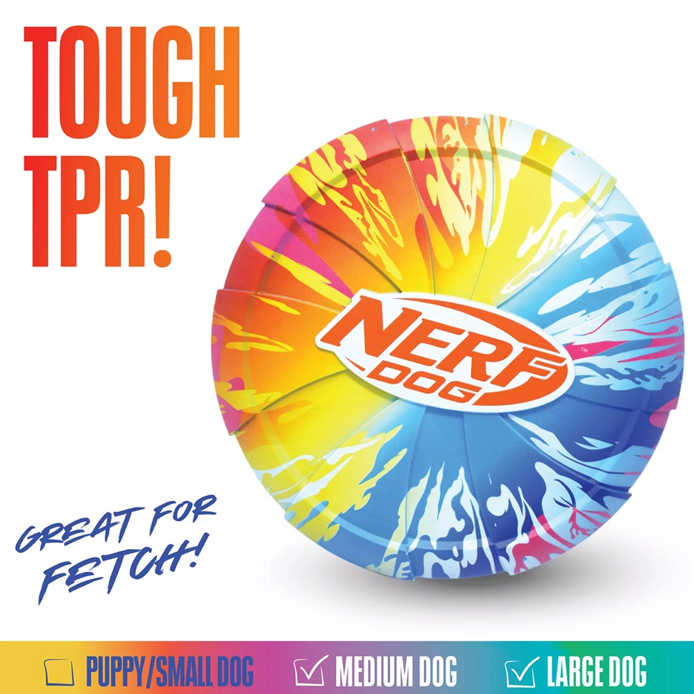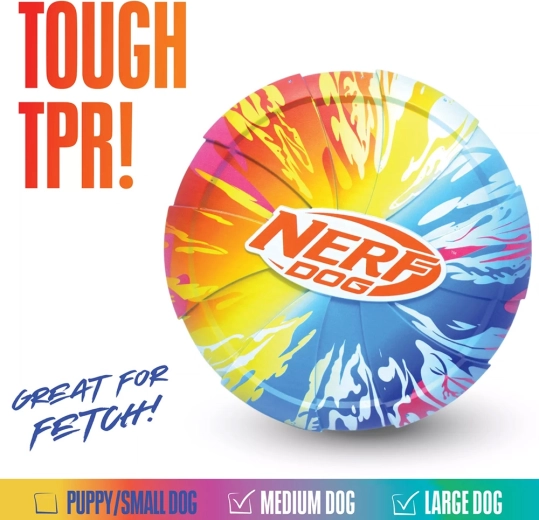 De Nerf Dog vliegende schijf is ontworpen voor snel en leuk buitenspelen. Thermoplastisch rubber (TPR) combineert duurzaamheid en flexibiliteit, waardoor het zacht is voor tanden en tandvlees bij het vangen. Dankzij het ergonomische, getextureerde oppervlak laat de schijf zich goed werpen en kan de hond hem ook in de lucht gemakkelijk grijpen.