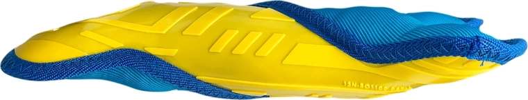 Het contrasterende geel en blauw zorgt ervoor dat je het speeltje gemakkelijk terugvindt tijdens het apporteren in de tuin of het park.