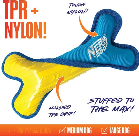Zoek je een leuke en duurzame speelgoed voor actieve honden? Het NERF DOG bot van 28 cm combineert een stevige TPR-kern met zachte pluchen nylon voor comfortabel kauwen, touwtrekken en apporteren. Dankzij de heldere, zeer goed zichtbare kleuren vind je het ook buiten gemakkelijk terug en de slijtvaste constructie is ideaal voor middelgrote en grote rassen.