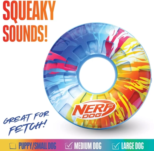 De Nerf Dog piepende vliegende ring is ontworpen voor actieve honden die van apporteren houden. Het flexibele en duurzame thermoplastische rubber (TPR), vriendelijk voor tanden, zorgt voor veilig en langdurig speelplezier. Dankzij de opvallende kleurstelling is de ring goed zichtbaar tijdens de vlucht en na de landing, wat het terugvinden en een vloeiend spel vergemakkelijkt.
