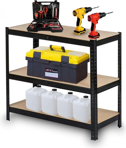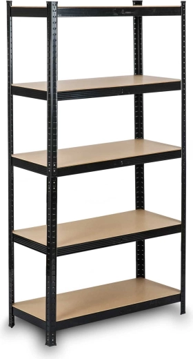 Het robuuste opslagrek HUMBERG in elegante zwarte kleur is ontworpen voor veilige en overzichtelijke opslag van gereedschap, bakken en materialen. Versterkte profielen (0,7 mm) en stevige MDF legborden (5 mm) garanderen een hoog draagvermogen tot 150 kg per legbord bij gelijkmatige verdeling. Afgeronde randen verhogen de veiligheid tijdens het hanteren en kunststof doppen beschermen de vloer.