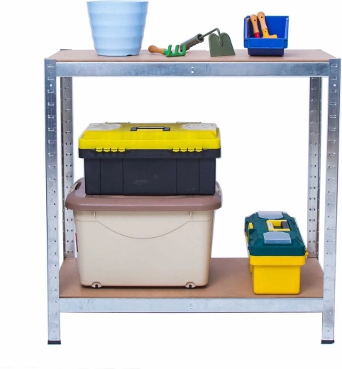 Elke MDF plank draagt tot 125 kg bij gelijkmatig verdeelde belasting. Ideaal voor gereedschap, bakken en materiaal in de garage of werkplaats.
