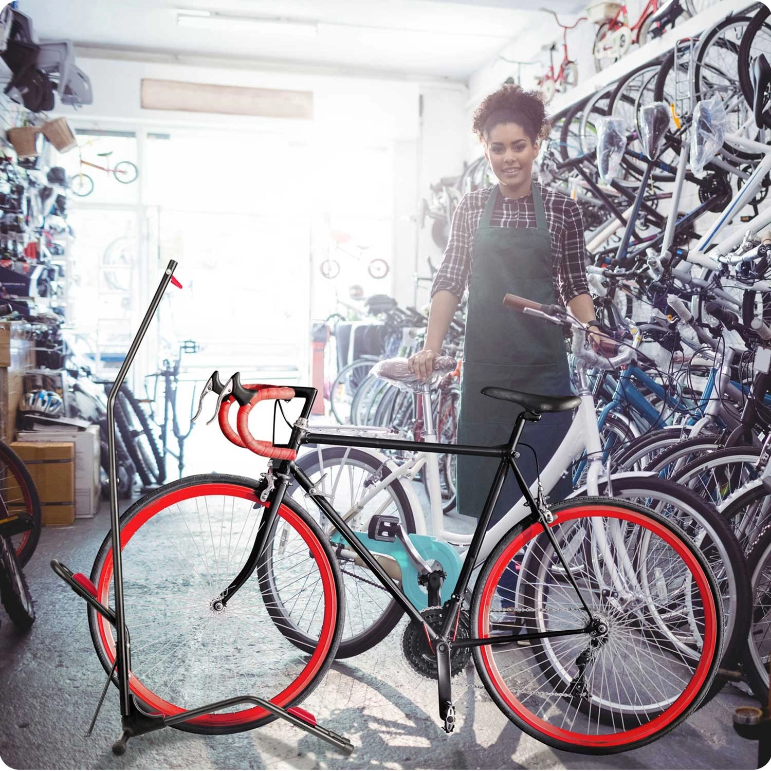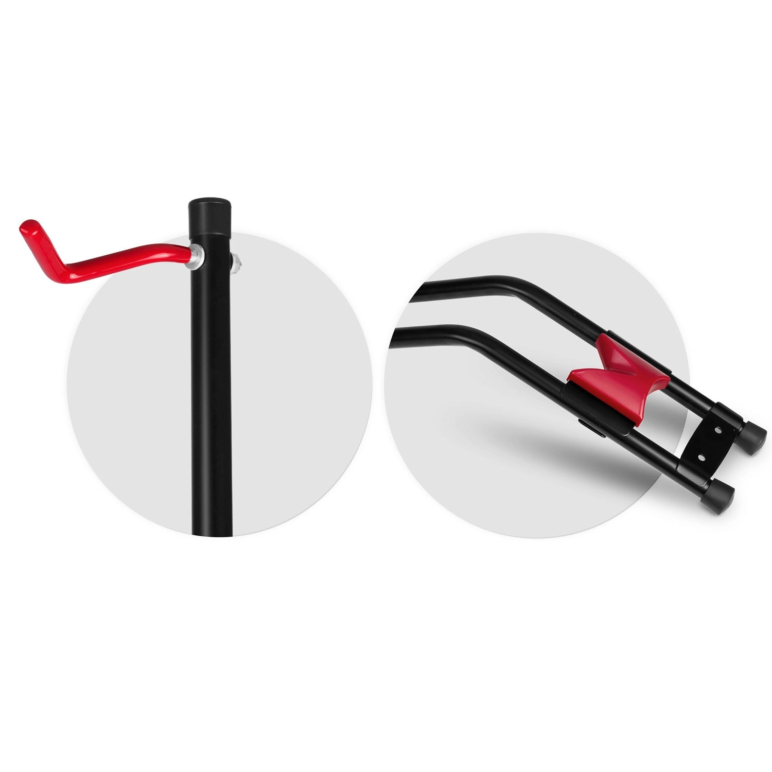 De brede basis, steunwiegel en haken met bescherming houden de fiets stevig op zijn plaats zonder omvalgevaar, zowel tijdens onderhoud als bij opslag.
