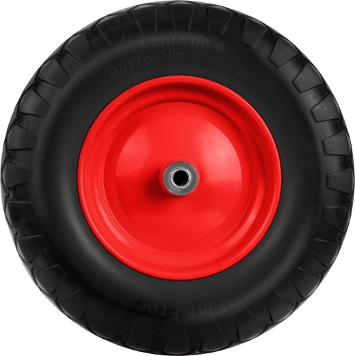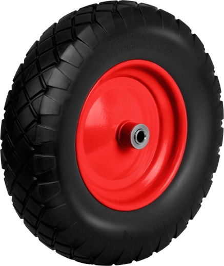 Universeel tubeless Humberg-wiel voor kruiwagens en tuinkarren, met een duurzame, verstevigde stalen velg, een verzinkte as in de set en kogellagers voor een soepele loop. Het wiel van slijtvast PU-schuim vereist geen oppompen of onderhoud en is ideaal voor veeleisend gebruik in de tuin, werkplaats en bedrijfstoepassingen.