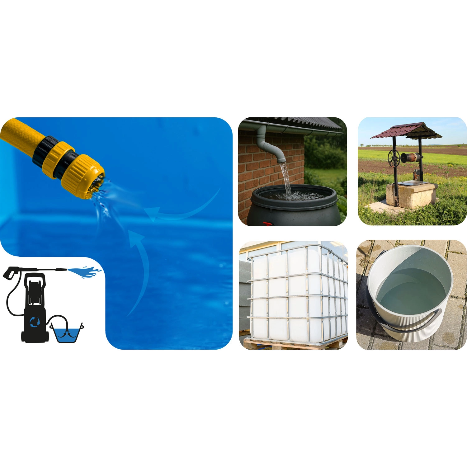 Geen kraan bij de hand? Geen probleem. De geïntegreerde zelfaanzuiging maakt het mogelijk water uit reservoirs, regentonnen of IBC-containers te pompen. De aluminium pomphuis zorgt voor een lange levensduur en stabiele prestaties.