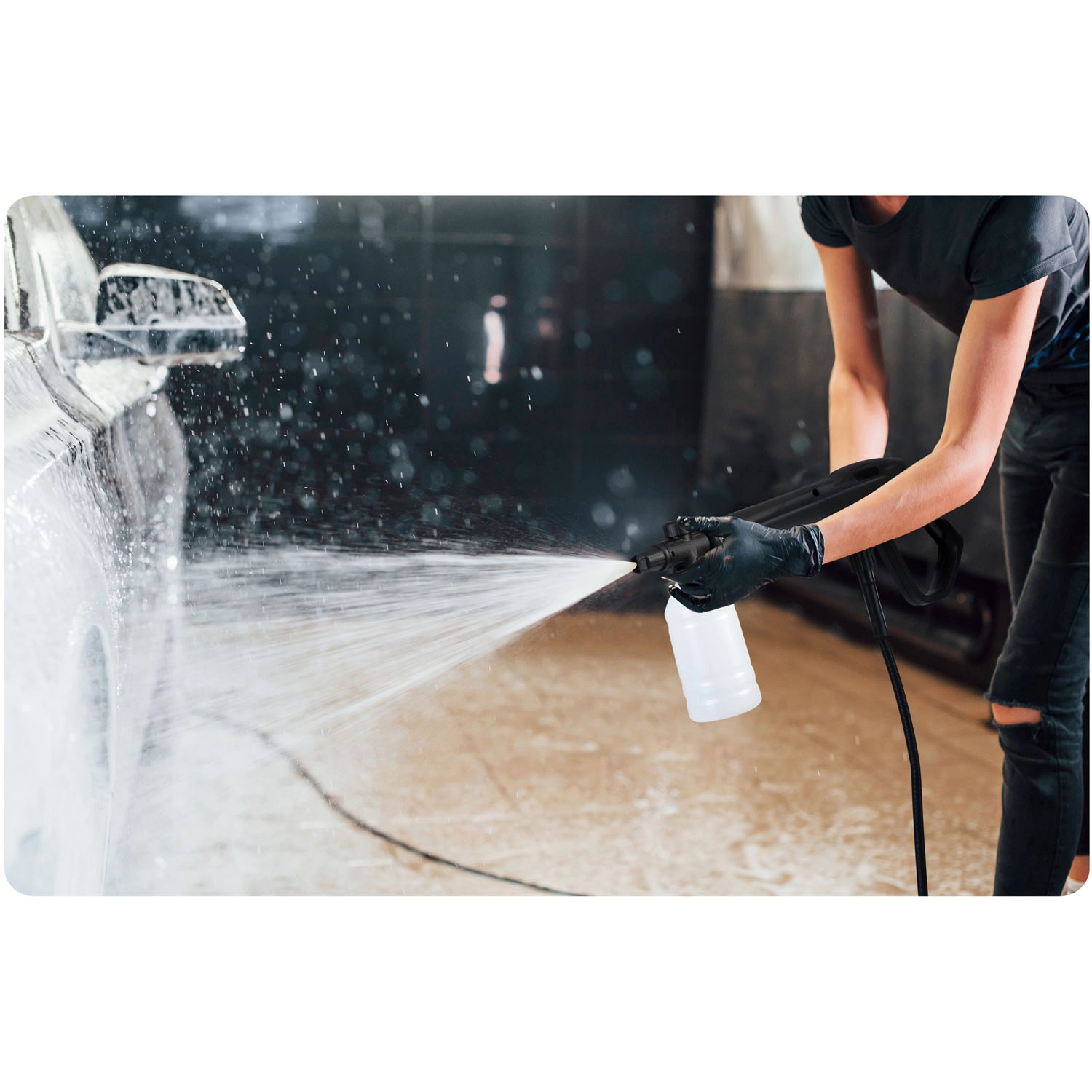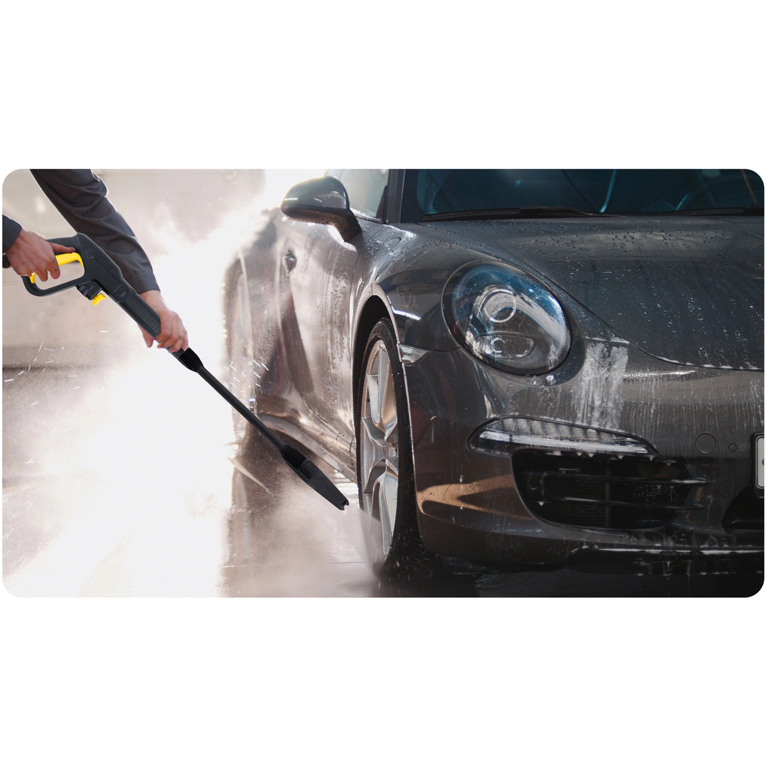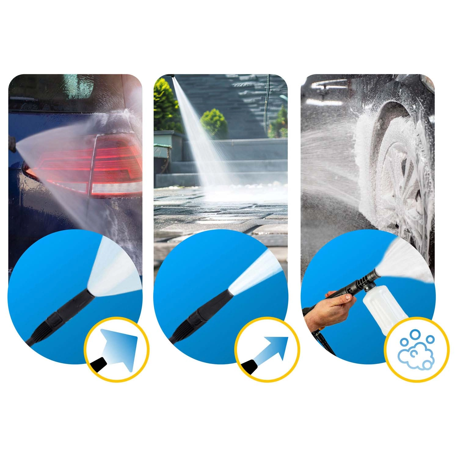 Schakel over op het turbomondstuk voor een geconcentreerde straal op de meest hardnekkige vervuiling of gebruik de traploze instelling van de vlakstraal voor het voorzichtig reinigen van carrosserie en ramen.