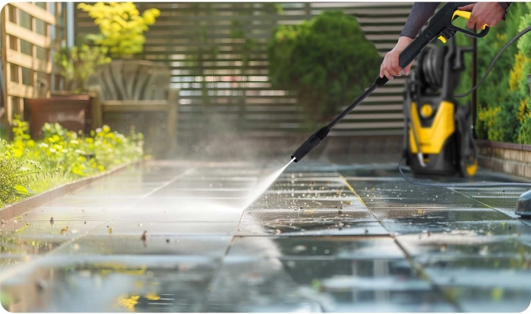De geconcentreerde hogedrukstraal verwijdert snel vet, modder en mos op bestrating. Ideaal voor veeleisende reiniging van terrassen, trottoirs en voertuigonderstellen.