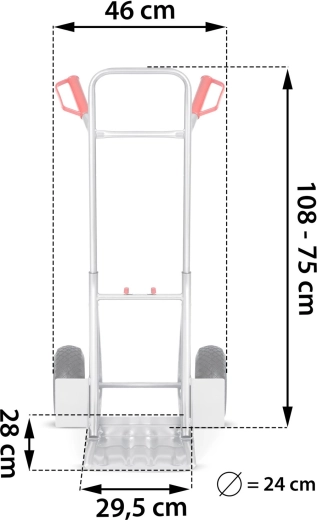 Dankzij de verstelbare hoogte van 75–108 cm en de inklapbare onderste platformplaat pas je de wagen eenvoudig aan de lading aan en bespaar je ruimte bij het opbergen. Het verzinkt stalen frame weerstaat corrosie en slijtage, en de PVC-handgrepen bieden een comfortabele en veilige grip, ook bij langdurig gebruik.