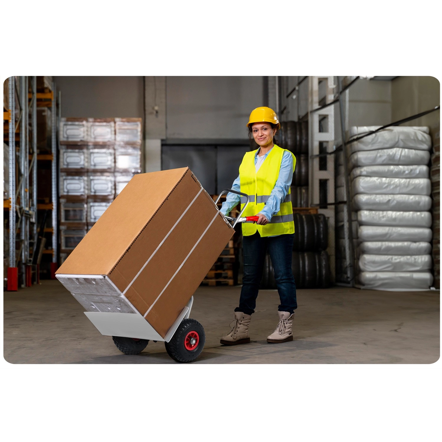 Deze robuuste inklapbare steekwagen is ontworpen voor dagelijks werk in logistiek, retail, catering en de thuisklusruimte. De stevige constructie met een draagvermogen van 150 kg verwerkt zware dozen, kratten en vaten, terwijl twee grote luchtbanden zorgen voor soepele beweging over tegels, beton en oneffenheden.