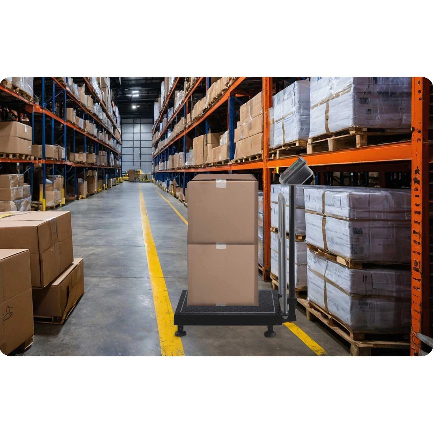 Praktische details zoals een handgreep/steun voor hogere of onstabiele ladingen, een gemarkeerde omtrek voor gelijkmatige gewichtsverdeling en een inklapmechanisme verhogen de efficiëntie, verkorten de behandeltijd en minimaliseren weegfouten.