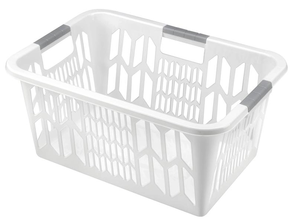 Praktische en stijlvolle mand voor schoon wasgoed van duurzaam kunststof met afmetingen 56 × 39 × 25 cm, ideaal voor elke badkamer. Dankzij het lichte materiaal, de ergonomische handgrepen en het eenvoudige onderhoud draag je moeiteloos ook grotere hoeveelheden wasgoed en maak je de mand snel schoon.